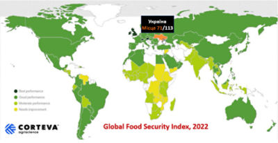 Пандемія COVID-19, політична нестабільність, інфляція, зростання цін на продукти харчування та екстремальні погодні явища у 2022 р. продемонстрували крихкість глобальної продовольчої системи та вплив цього на глобальну продовольчу безпеку. Economist Impact опублікував одинадцятий щорічний звіт про Глобальний індекс продовольчої безпеки (Global Food Security Index, GFSI), який оцінює стан продовольчих систем у 113 країнах. За результатами аналізу, глобальна продовольча безпека продовжує погіршуватися, після досягнення свого піку в 2019 році. Стан продовольчої безпеки в Україні погіршився суттєво – країна посідає 71 сходинку Індексу серед 113 країн, хоча в минулому році її місце було 58.